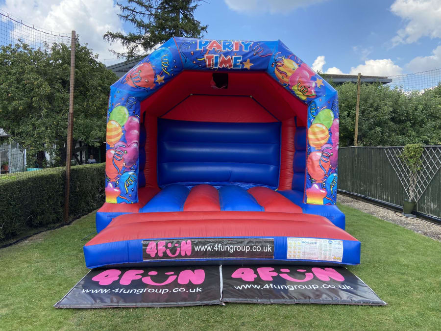 Party Time Bouncy Castle (Blue & Red) for hire in Buckinghamshire, Berkshire, Middlesex and Oxfordshire.