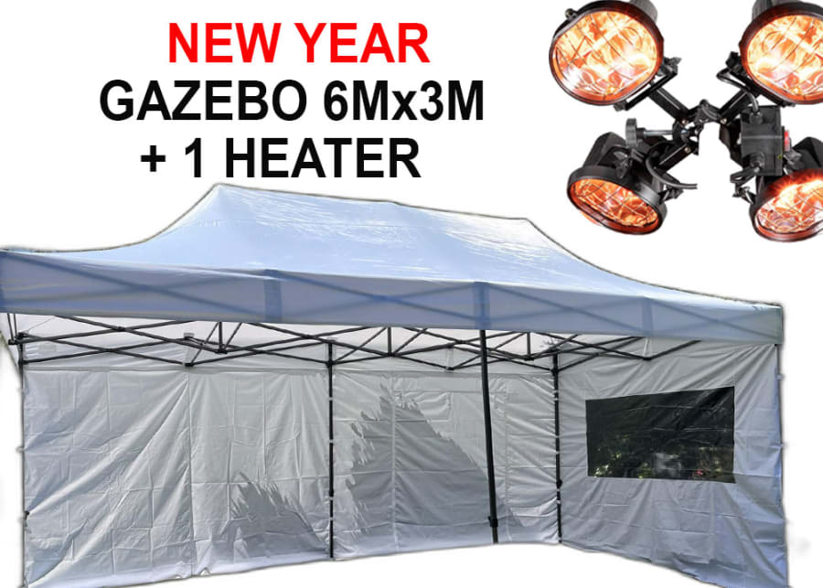 New Year Gazebo (WHITE) 6m x 3m with Heater for hire in Buckinghamshire, Berkshire, Middlesex, Oxfordshire & more