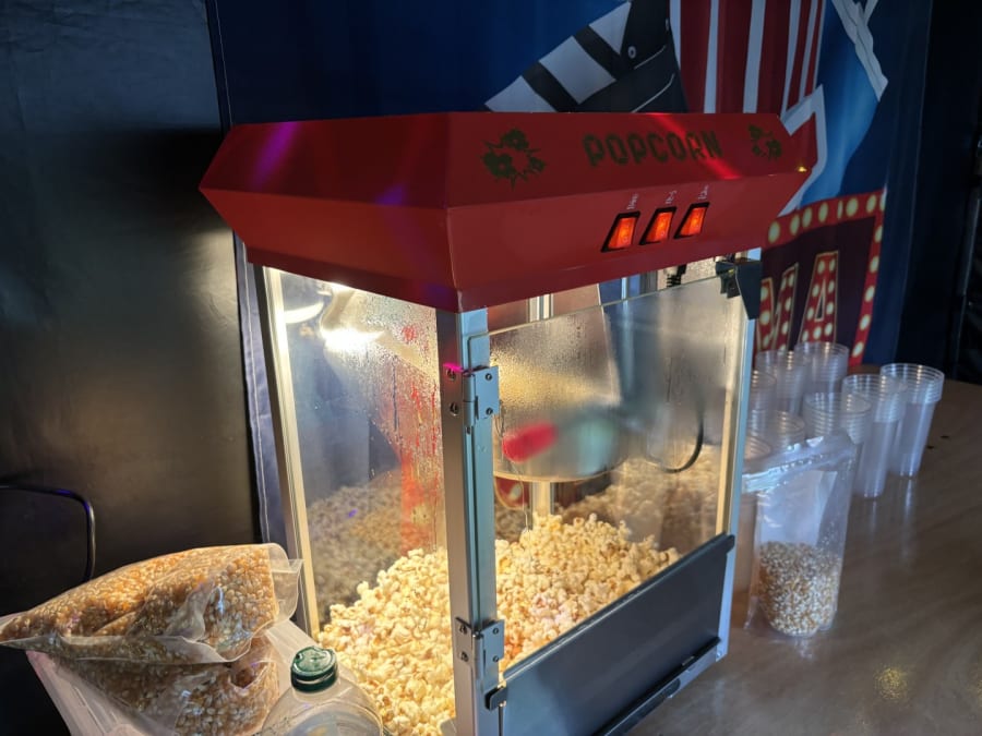 Add a touch of fun and nostalgia to your event with our Popcorn Machine! Perfect for parties, movie nights, fairs, and corporate events, this easy-to-use machine serves up delicious, freshly popped popcorn that everyone will love. With its charming design and irresistible aroma, our popcorn machine is sure to be a hit with guests of all ages. Book now to bring a delightful and tasty experience to your next event!