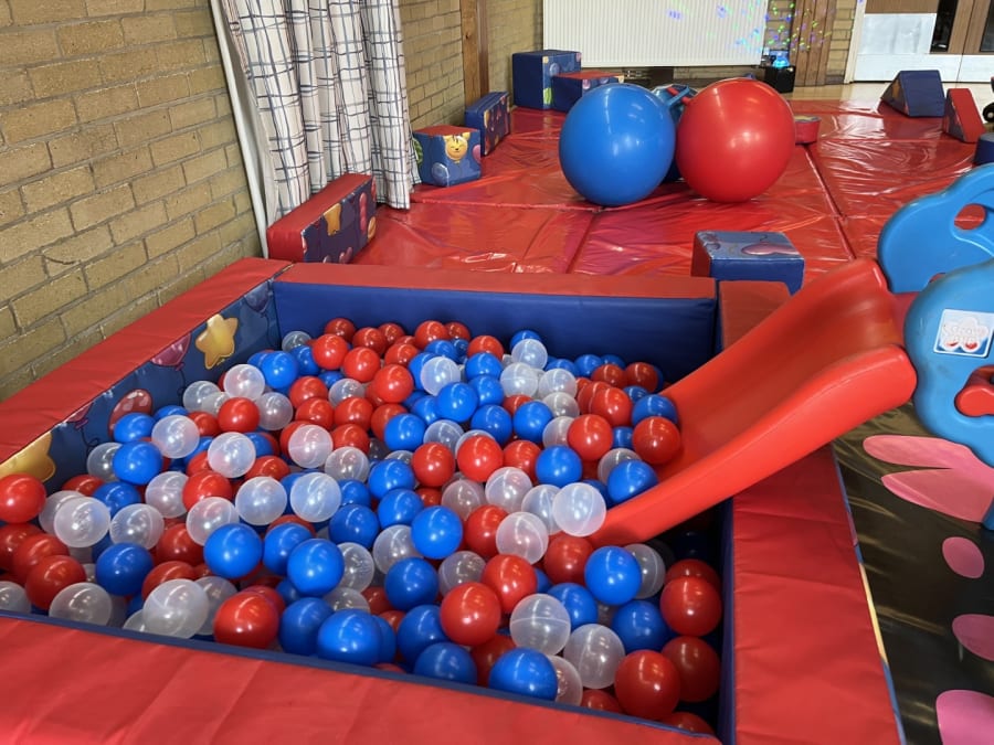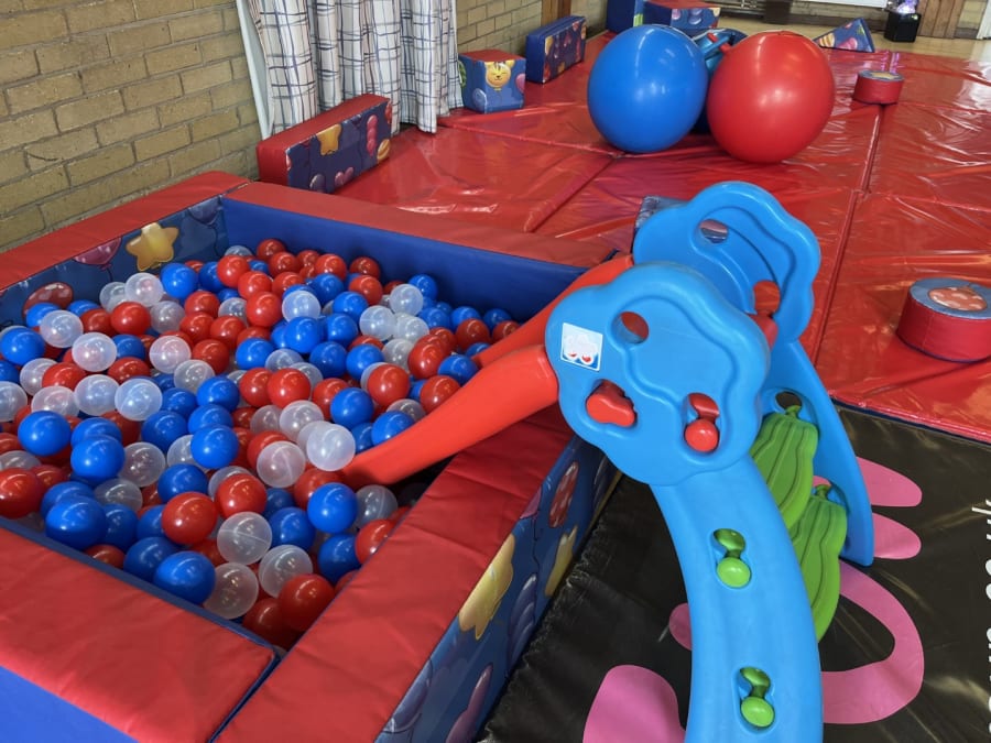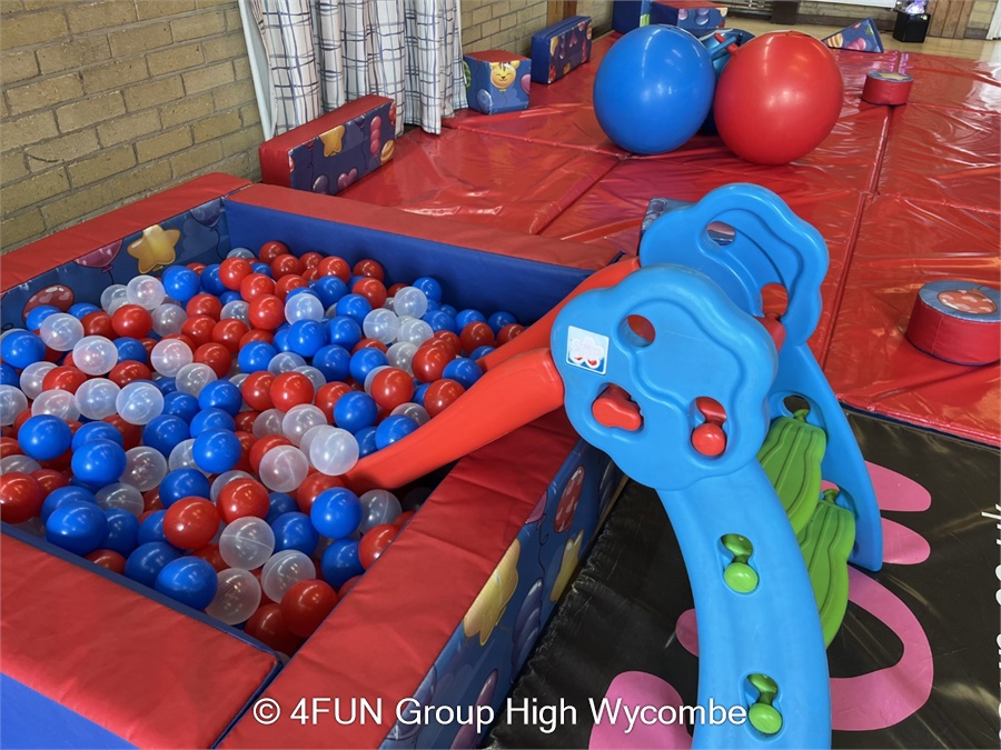 Party Time Ball Pond (Blue & Red) with Slide for hire in Buckinghamshire, Berkshire, Middlesex and Oxfordshire.