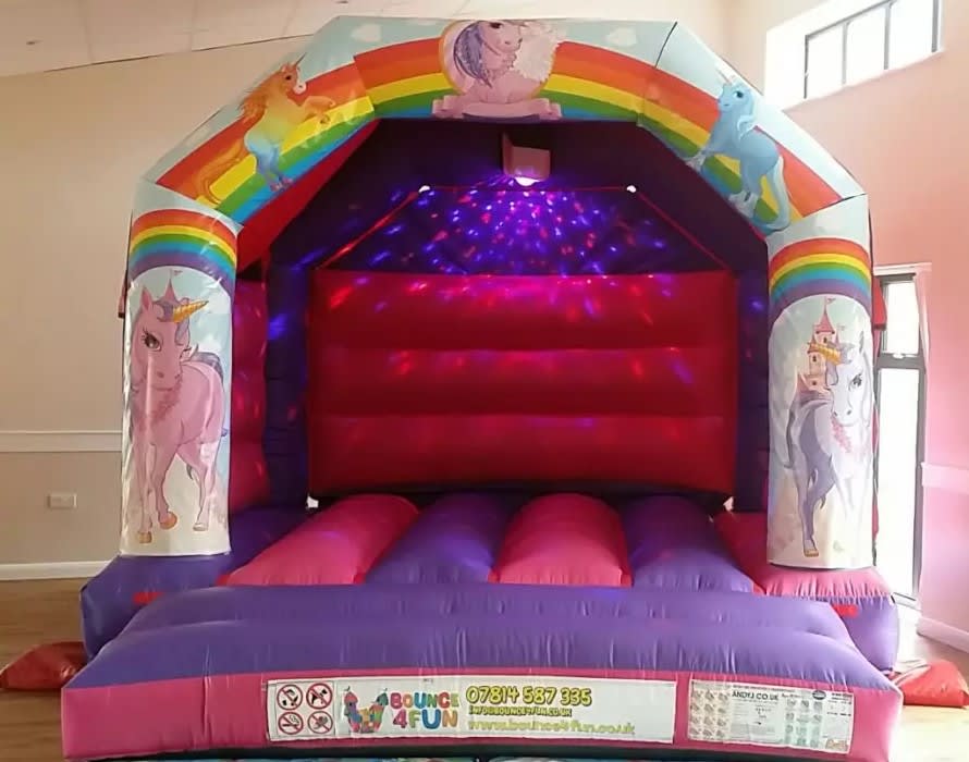 Unicorn Bouncy Castle 12ft x 15ft for hire in Buckinghamshire, Berkshire, Middlesex and Oxfordshire.